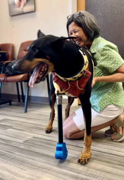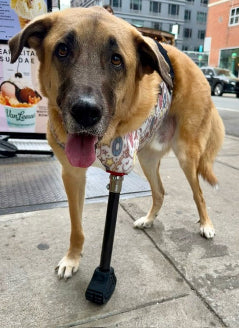 Our Custom Full-Limb Prosthetics are designed to aid in the relief of the weight-bearing leg in the event of a full limb amputation. These devices are perfect for the front limb "Tripawd" animals. Our custom full limb prosthetics assist by providing support in the absence of a front limb, alleviating pressure on the remaining limbs, and help minimize gait deviations.